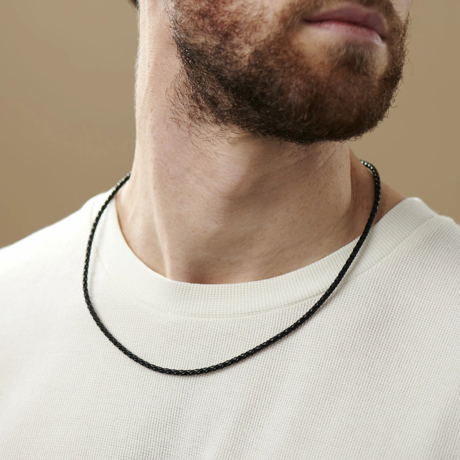 This simple woven leather necklace in a classic black finish will age and weather with time, staying durable but building character the more you wear it. It locks via an easy-to-use stainless steel lobster clasp.