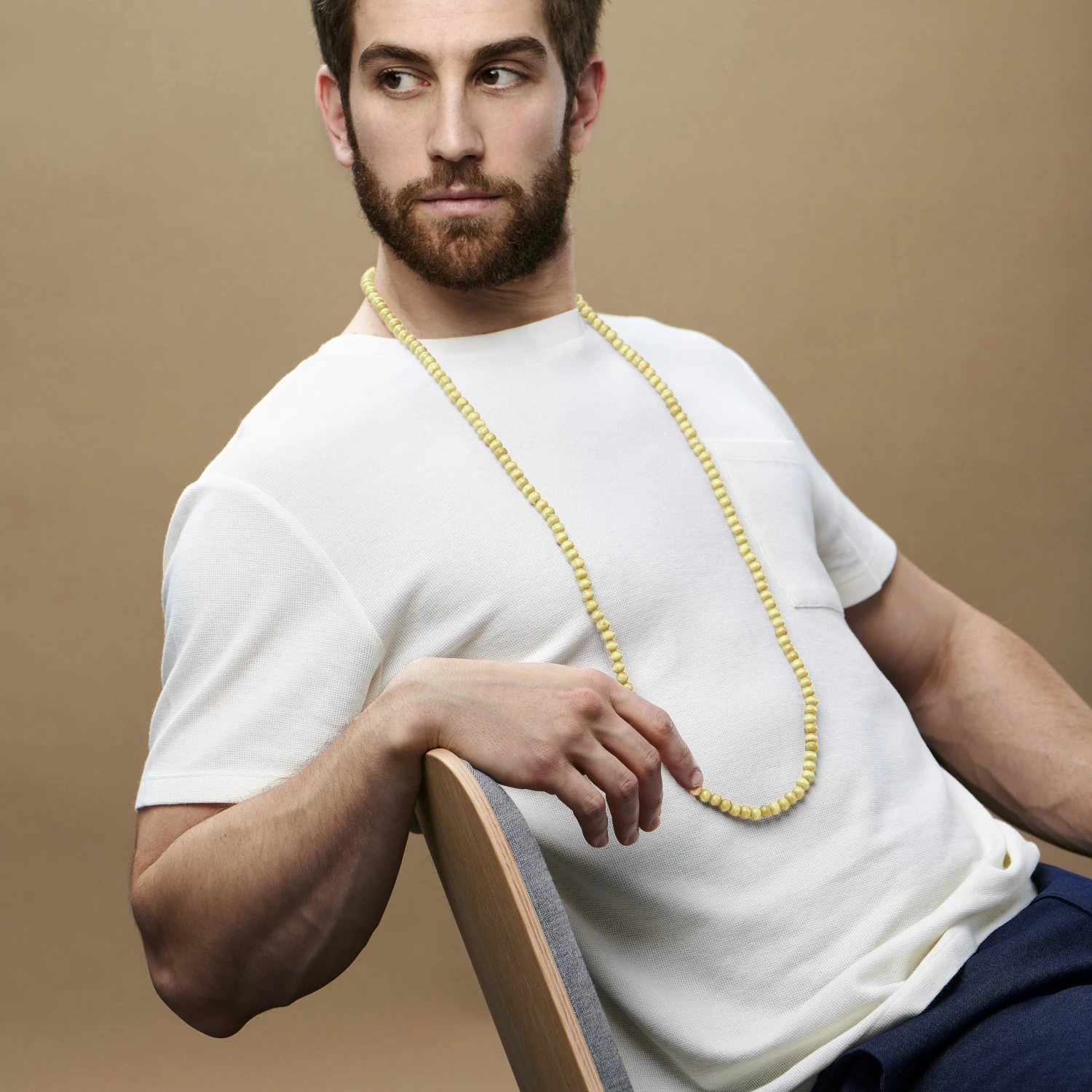 Gorgeous cream-colored round beads and a strong elastic band make this necklace one you won’t want to skip. Pair it with a cool t-shirt or tank top for the perfect summer look.