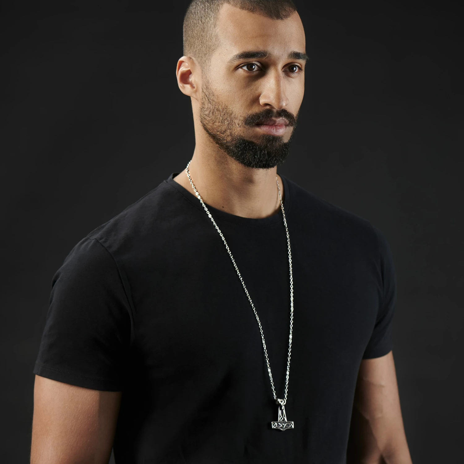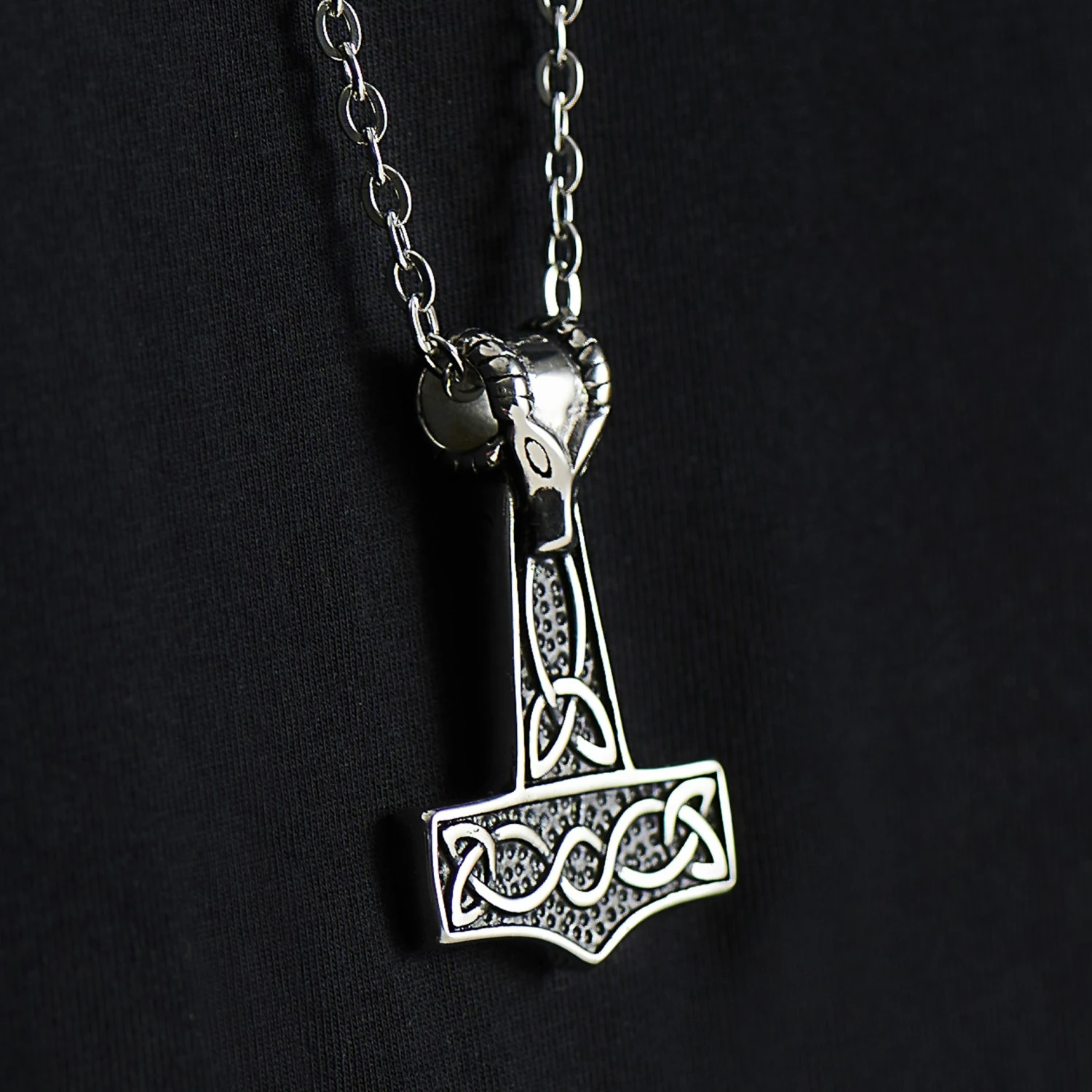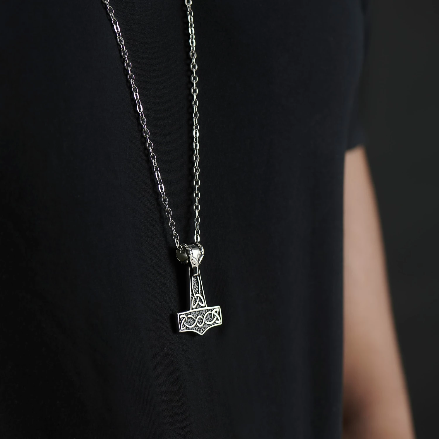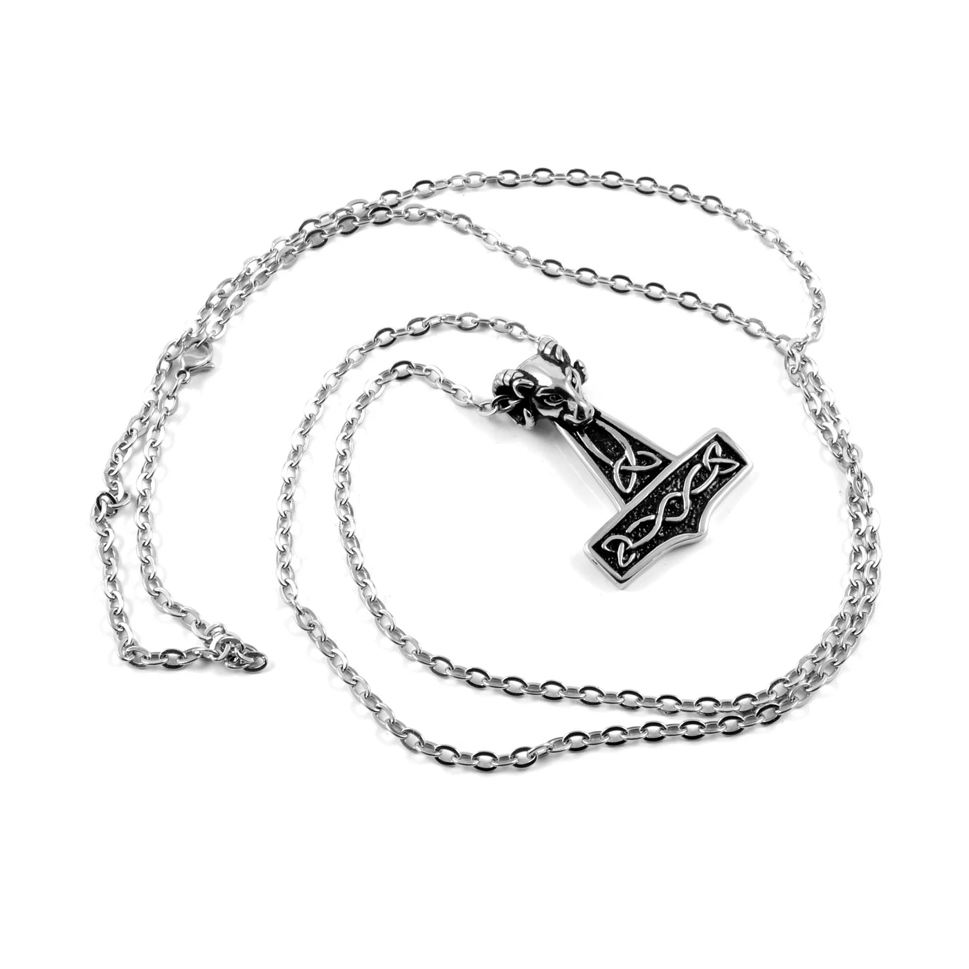 Wield the power of the gods with this bold necklace. Inspired by Norse legends, it features a detailed Thor’s hammer pendant with a ram’s head on top.