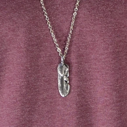 Light as a feather, stiff as stainless steel. This beautiful pendant is the perfect compliment to any ensemble. Hangs gracefully from an adjustable chain.
