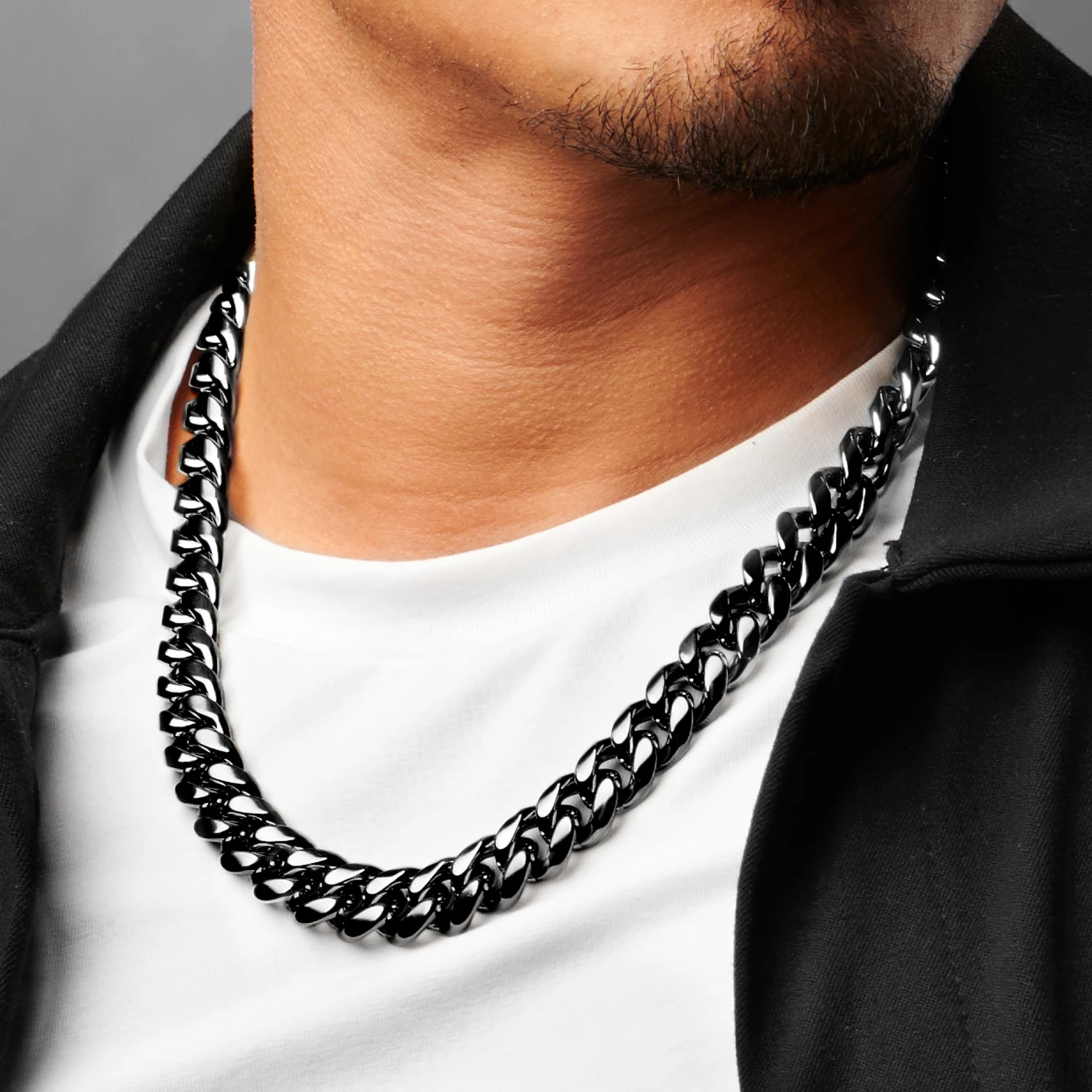 Crafted from stainless steel, this handsome men’s chain necklace is designed to match everything and – at 12 mm thick – still get attention.