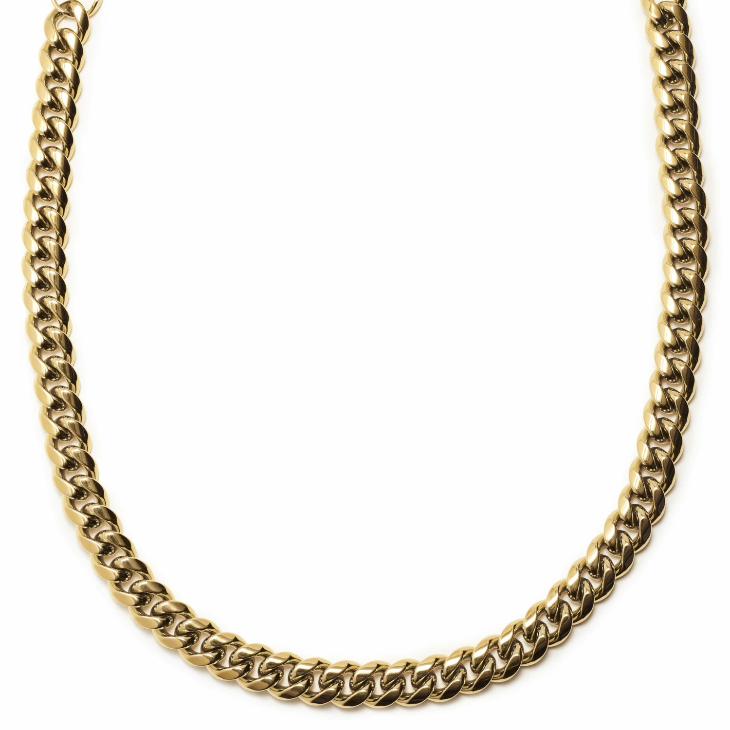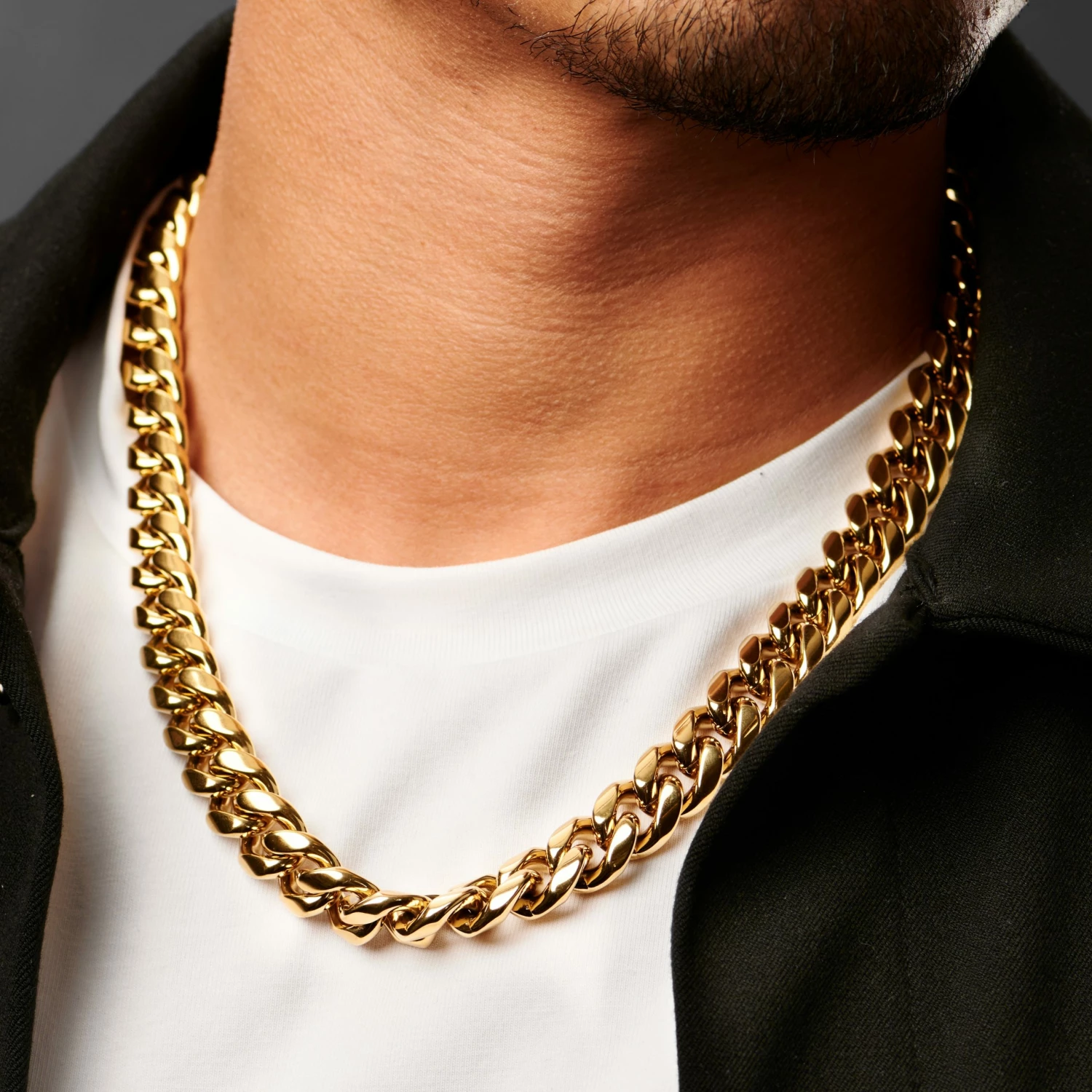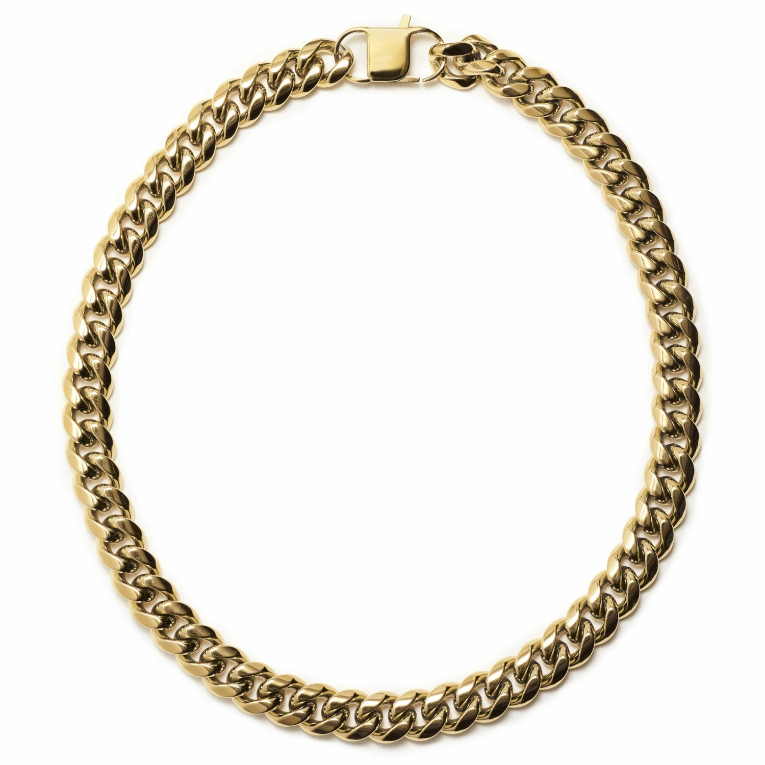 This chunky men’s chain necklace fits comfortably and securely with a lobster claw closure.