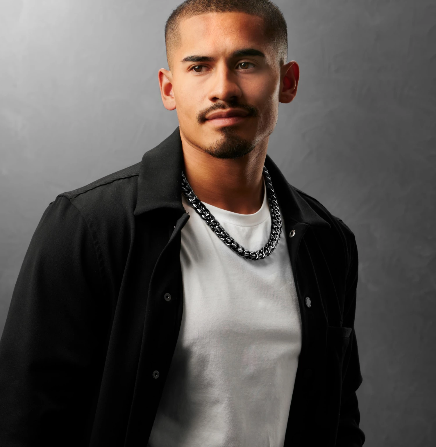 Black never goes out of style. Shiny and strong, this men’s chain necklace will match just about anything in your closet.