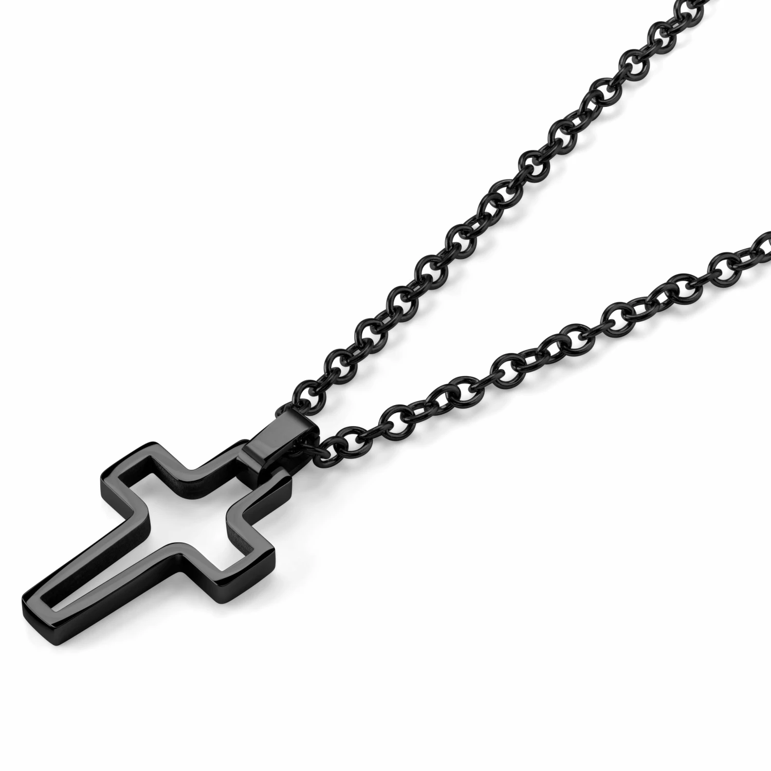 Constructed from surgical-grade stainless steel with a polished black finish, this men’s cross necklace is designed to wear day or night.