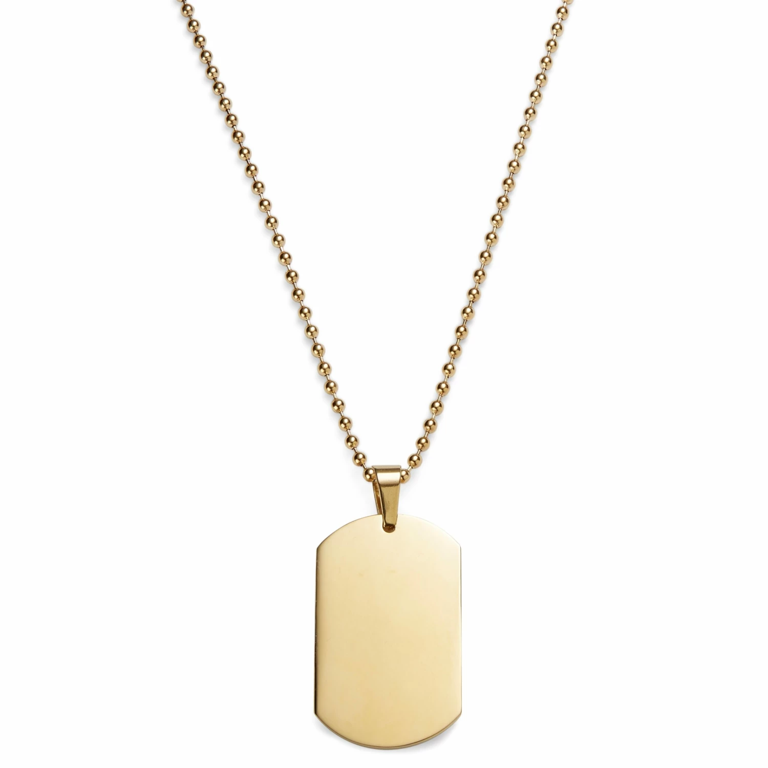 This dog tag boasts the traditional dog tag shape constructed in robust gold-tone surgical-grade stainless steel. The result is a statement-making accessory for men… and that’s before you add a custom engraving!