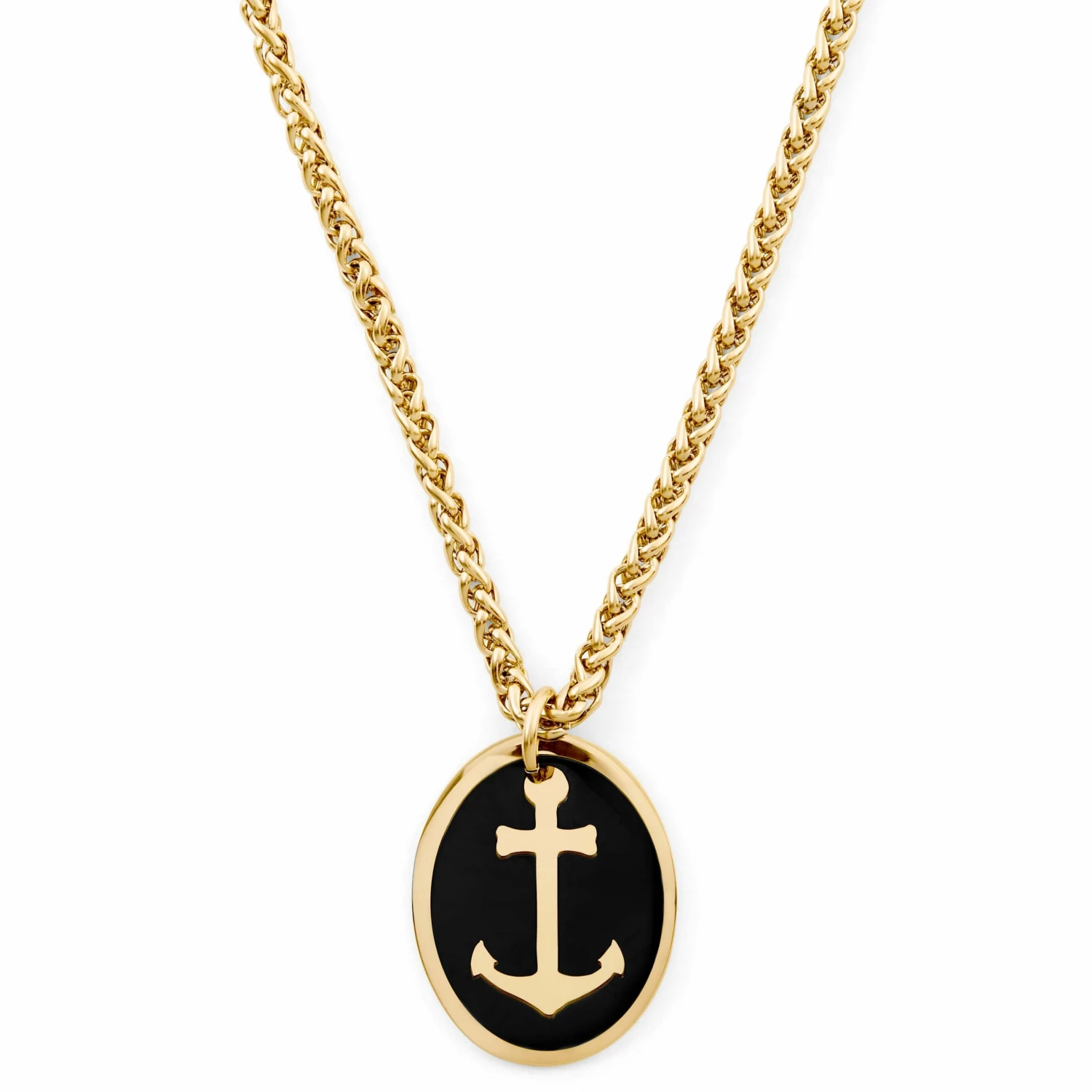 Adding to the necklace’s nautical theme is its wheat chain – the adjustable length of which puts you at the helm of where the pendants fall.