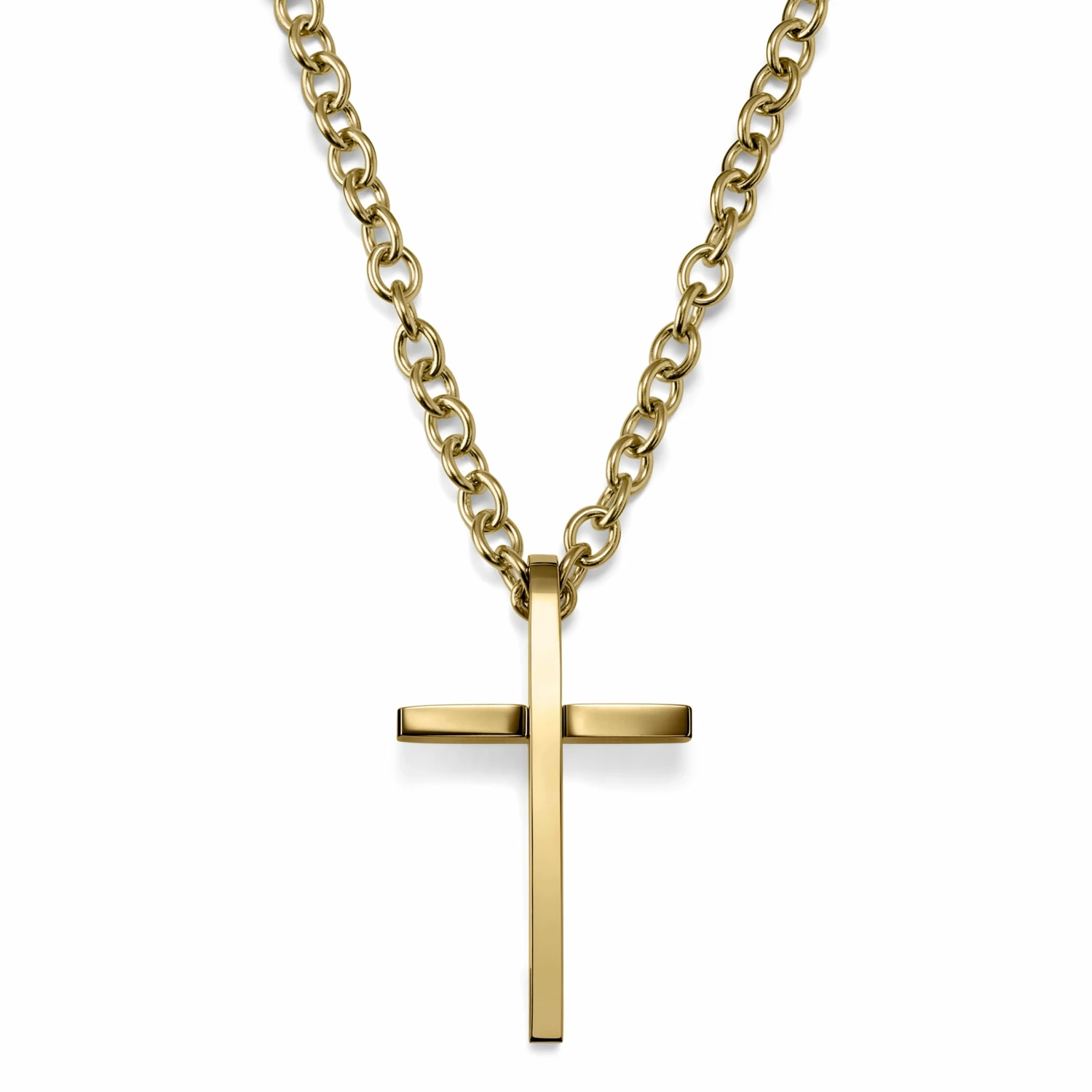 Gold-tone surgical-grade stainless steel defines this simple cross pendant necklace for men.
