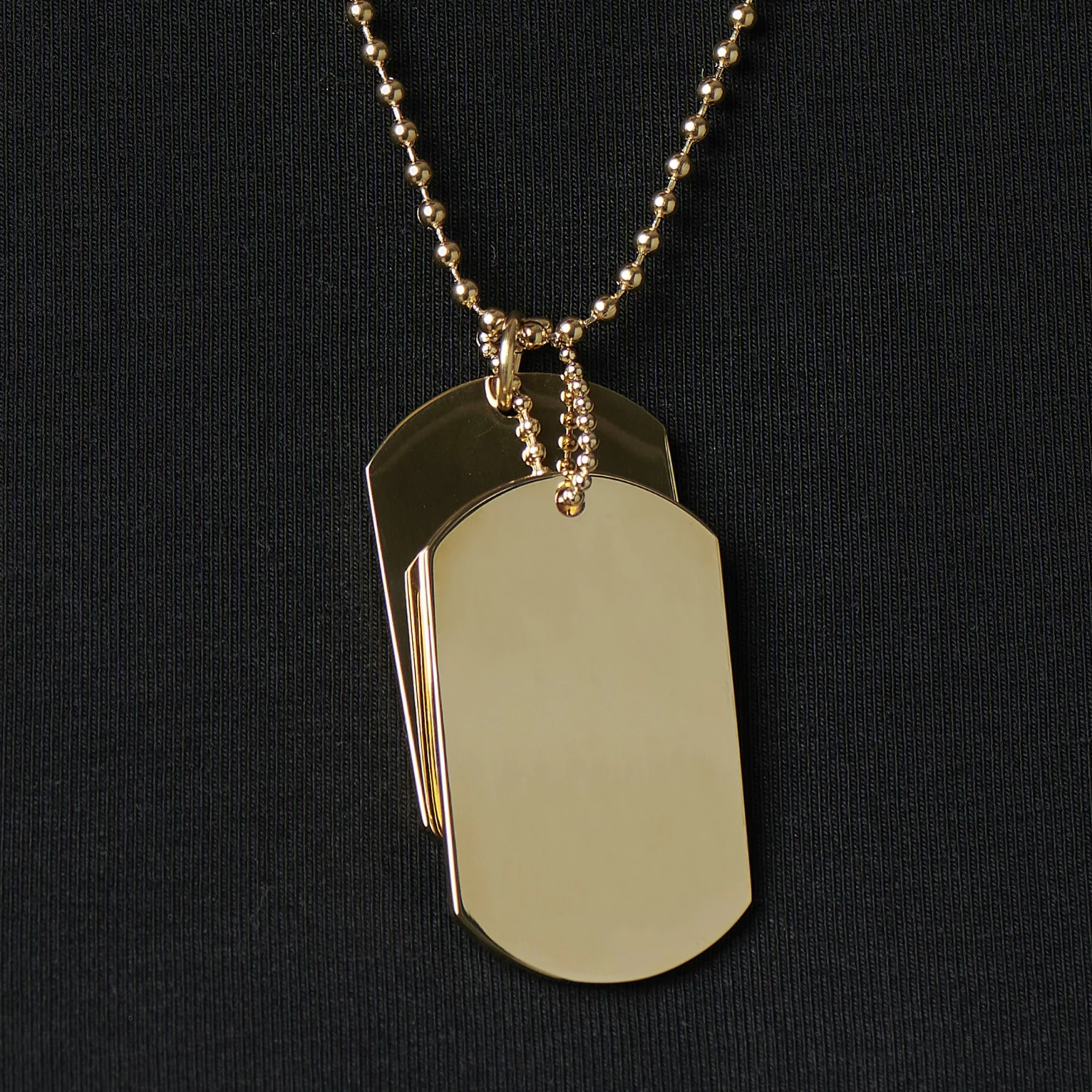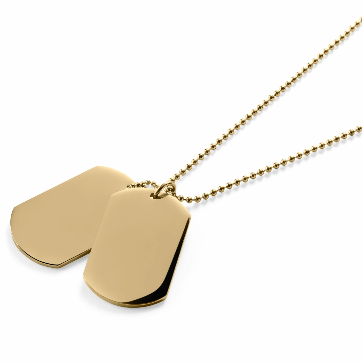Both gold-tone tags are held on a matching ball chain necklace. Wear them both or give one to a friend.