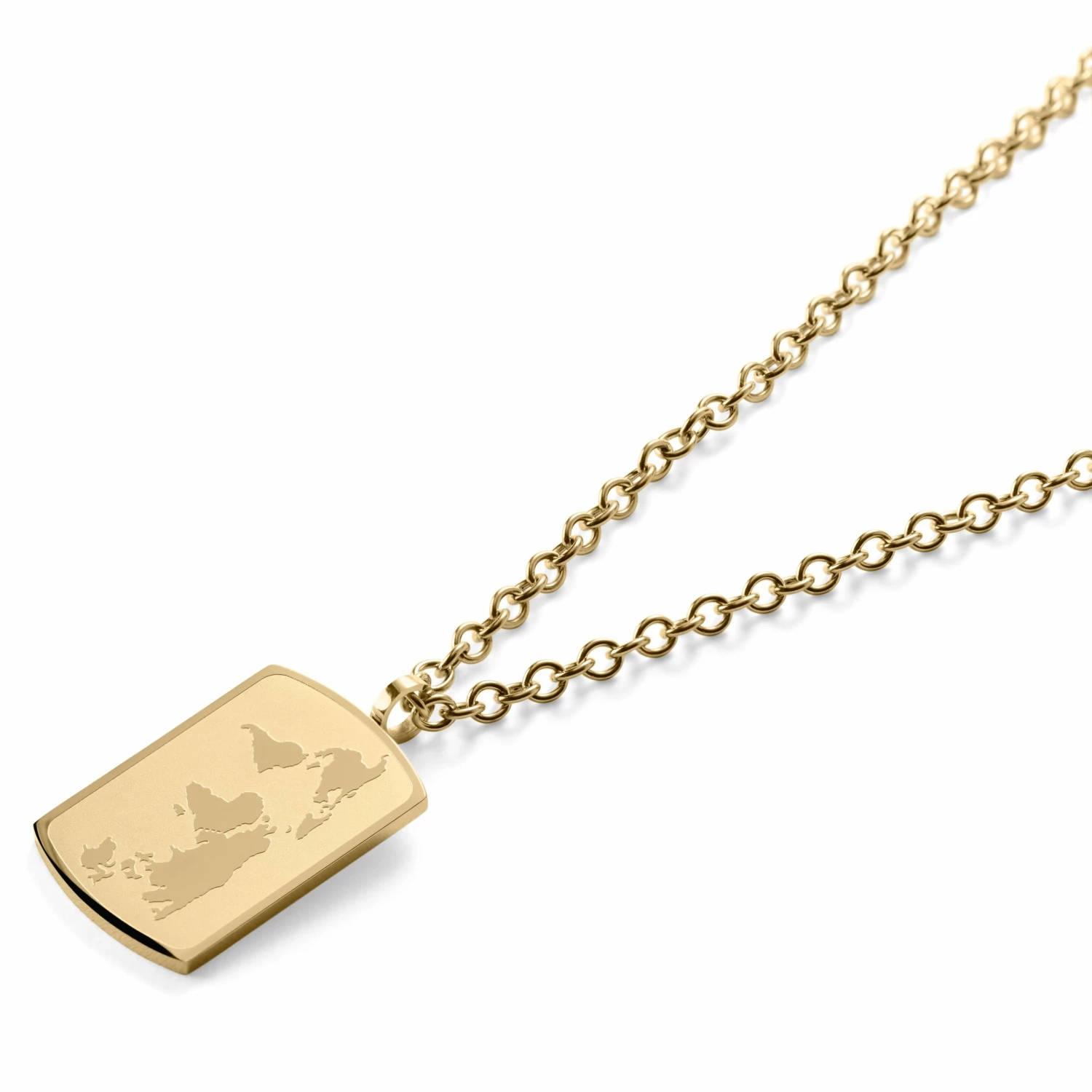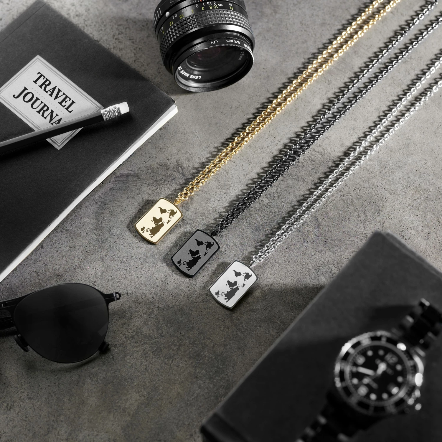 For the guy who loves to travel, let this dog tag necklace remind you of your adventures.