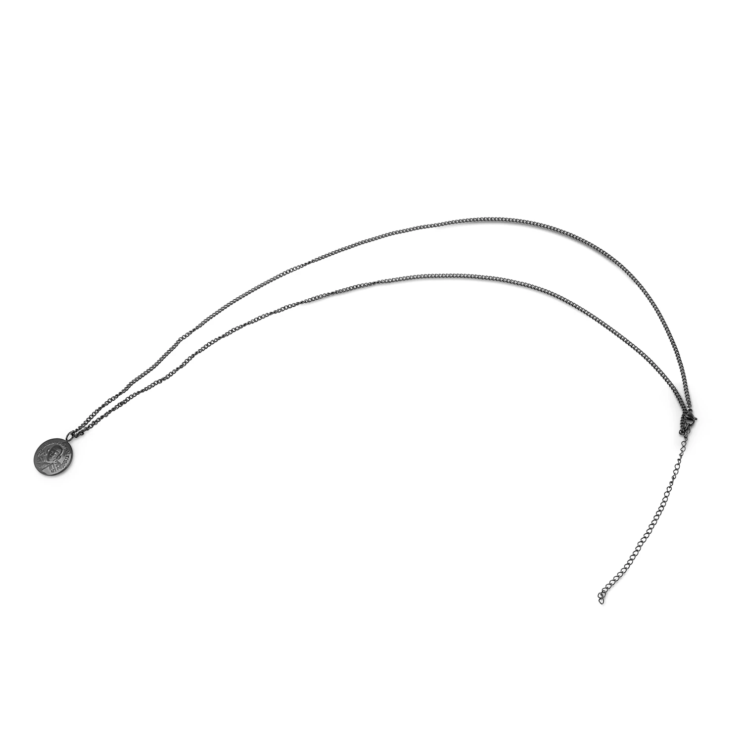 Crafted with surgical steel and strung on an adjustable black chain. Secures with a lobster claw clasp.