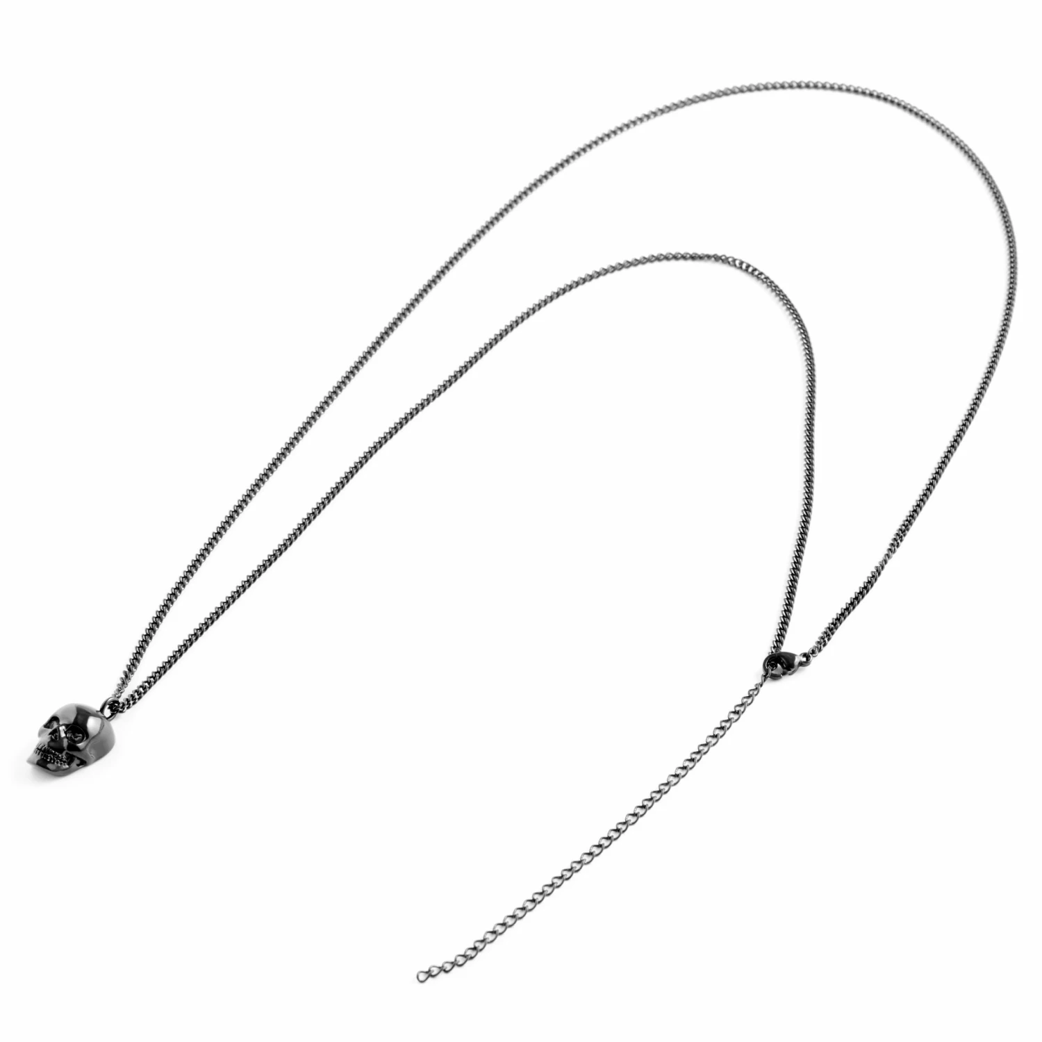 Go goth with this easy-to-adjust 100% stainless steel black skull pendant. Black eyeliner and bold piercings are optional.