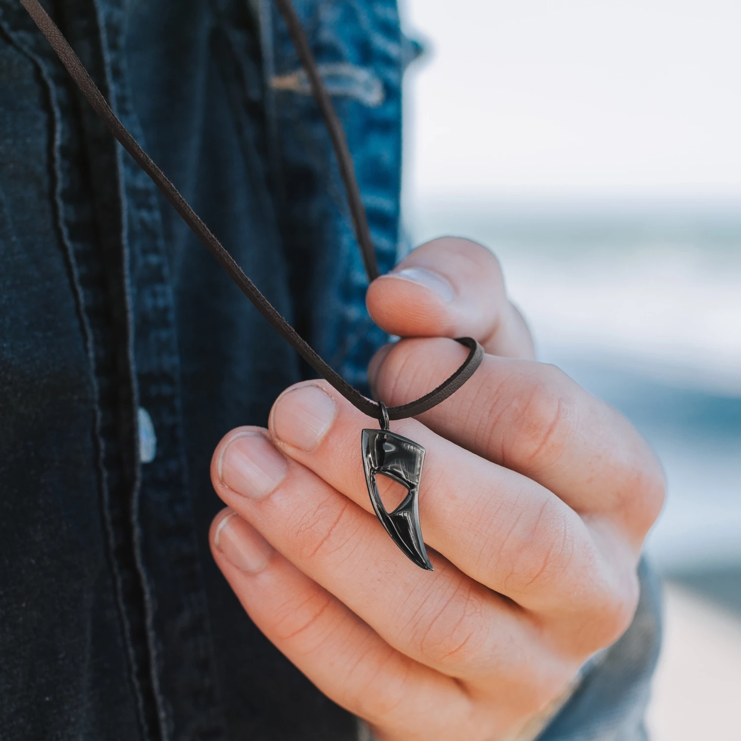 Lucleon, a Danish brand known for its bold yet minimalistic designs, took the classic shark tooth pendant for men and cut a triangle out of it.