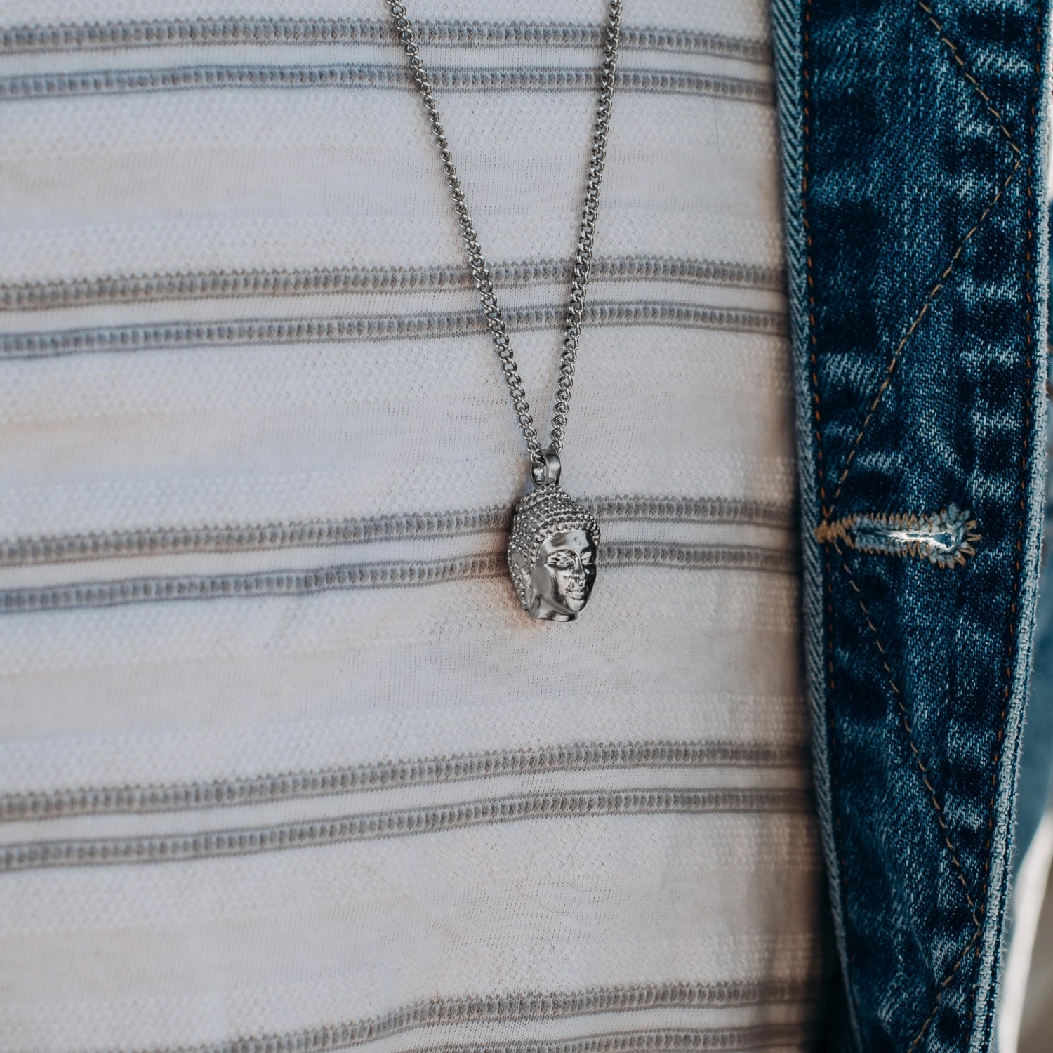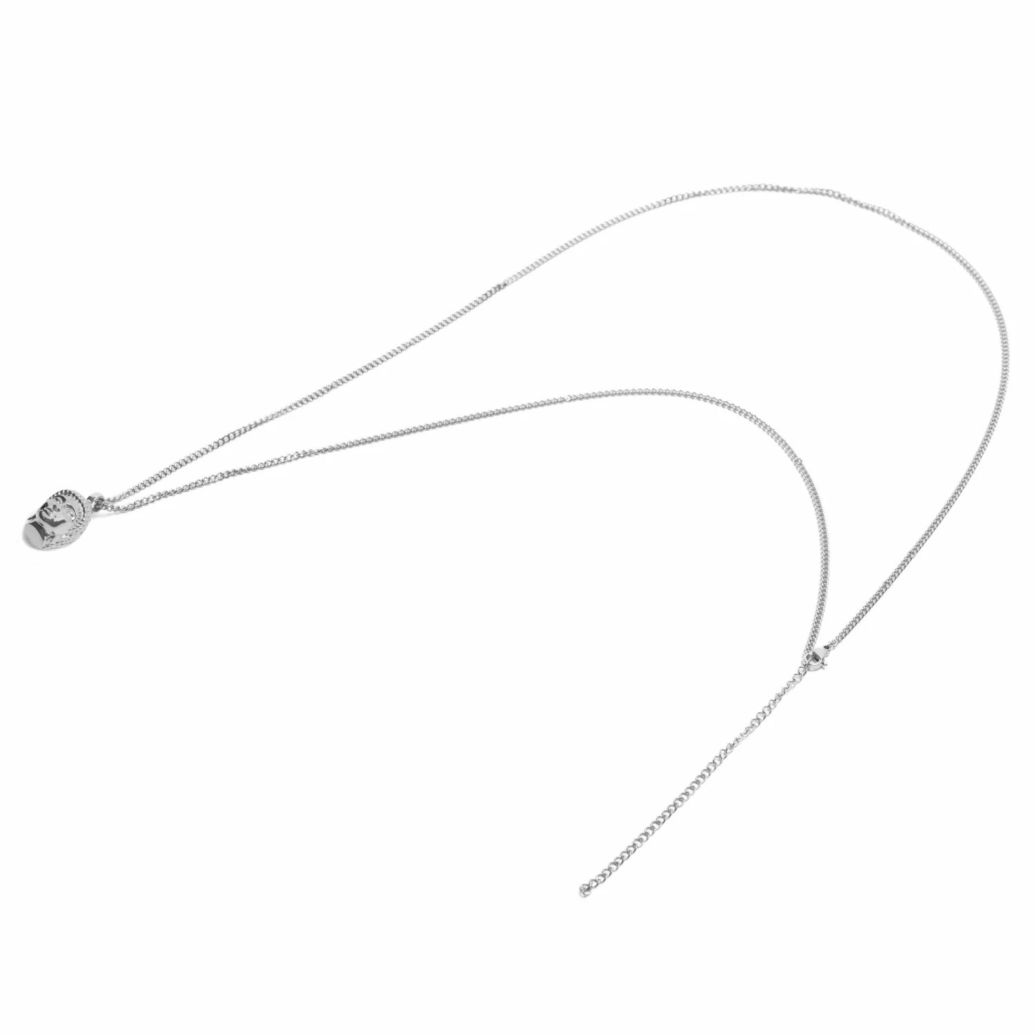 This men’s necklace is crafted from silver-toned surgical steel. Polished to a mirror-like shine. Strung on a matching, adjustable chain.