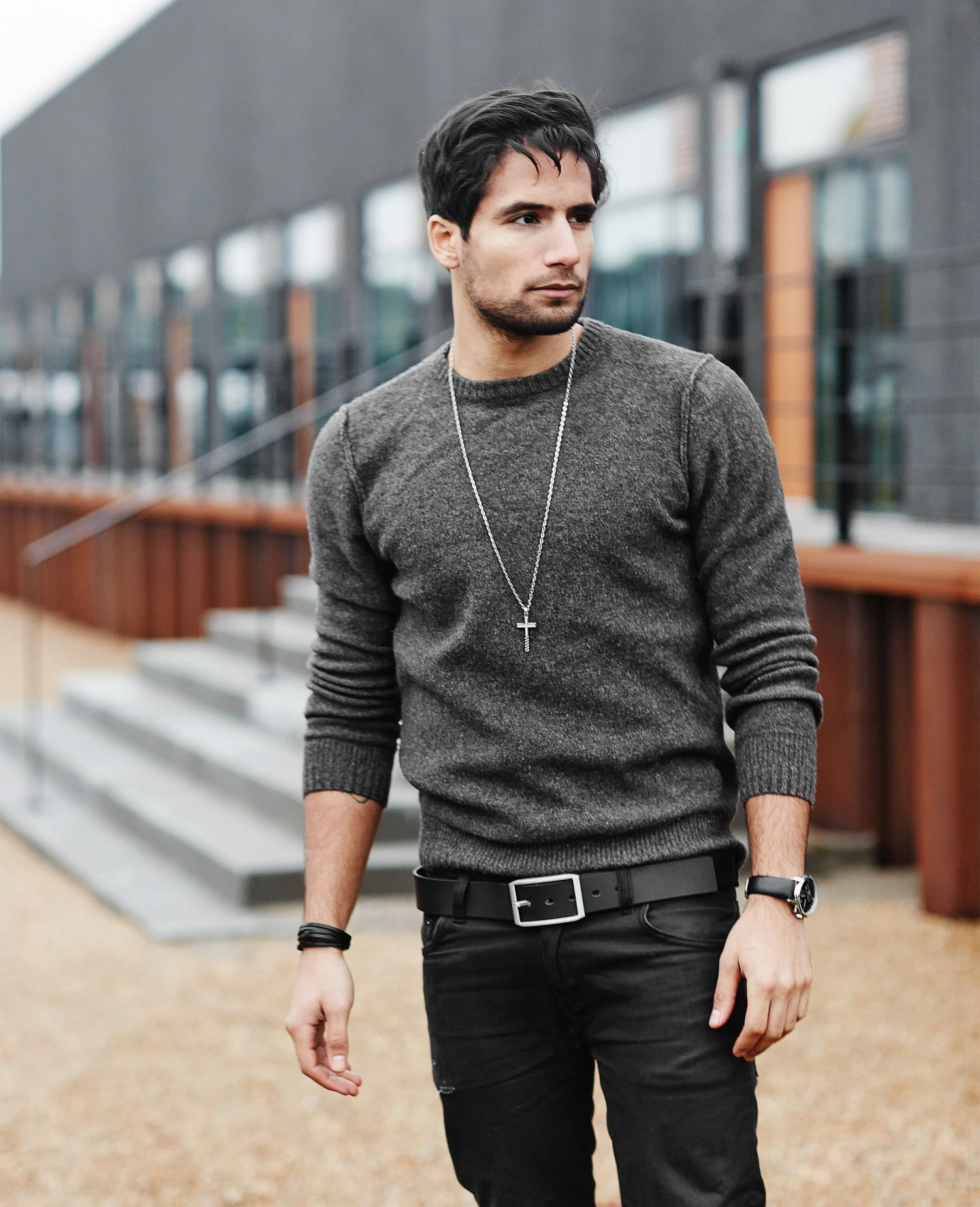 Here’s a subtle, yet gorgeous cross necklace for men who prefer a more understated look. The face is embossed with a smaller cross and has diagonal lines at the base.