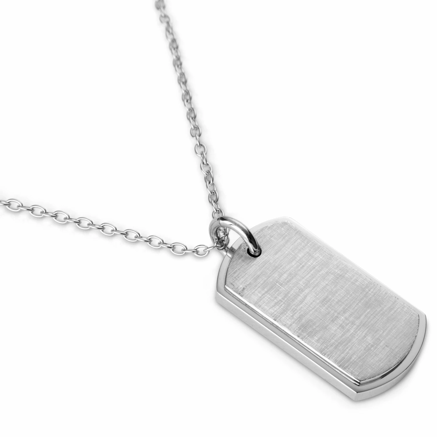 Constructed in surgical-grade stainless steel – polished on one side and brushed on the other. Complete with an adjustable chain and easy-to-open lobster clasp.