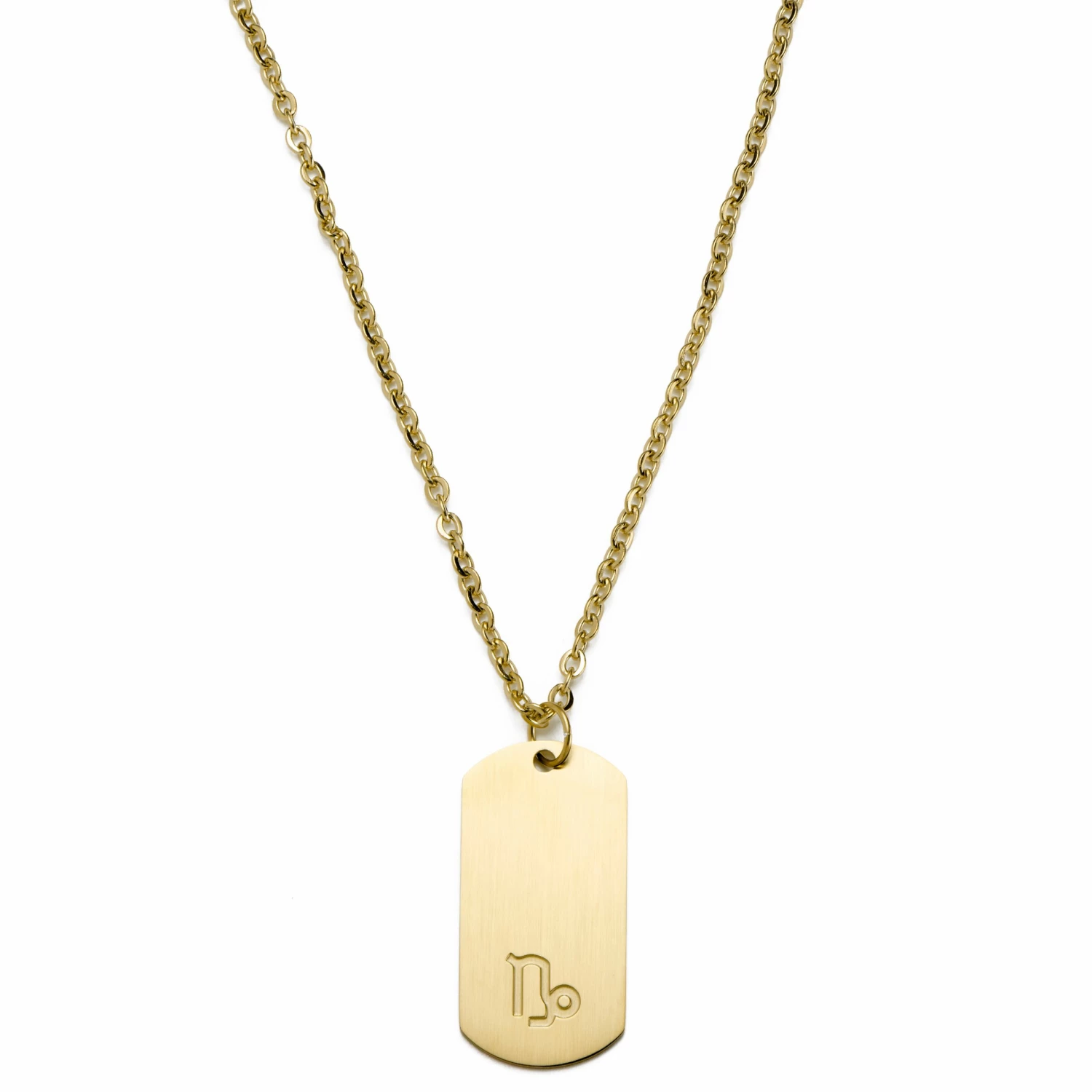 Constructed from rust-resistant stainless steel with a brushed 14K gold plating, this men’s dog tag necklace is a great way to show your personality to the world.