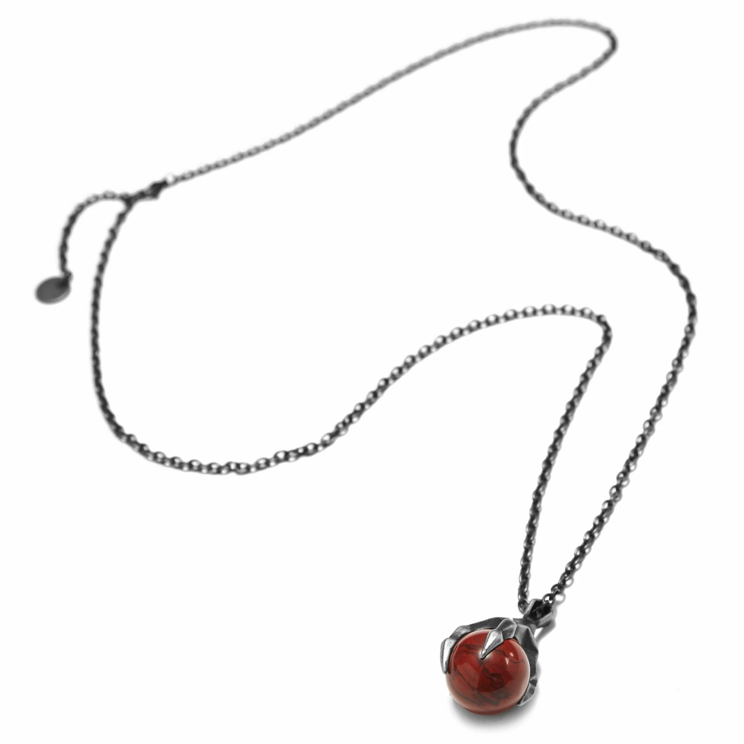 This dragon claw pendant is inspired by the power of this legendary creature and made strong by stainless steel. In its claws, you’ll find a natural Red Jasper stone – polished to shine.