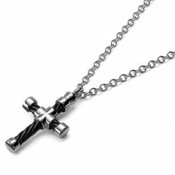 Lucleon Silver-Tone Stainless Steel With Black & Silver-Tone Cable Cross Cable Chain Necklace