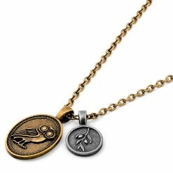 Lucleon Obelius | Vintage Gold-Tone Owl Of Athena & Silver-Tone Coin Cable Chain Necklace