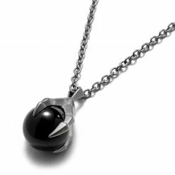Moody Mason Silver-Tone Stainless Steel Claw & Black Agate Stone Cable Chain Necklace