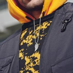 Otsu Egan | Silver-Tone Stainless Steel Feather Wing Box Chain Necklace