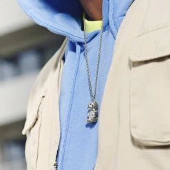 Otsu Egan | Silver-Tone Stainless Steel Teddy Bear Box Chain Necklace