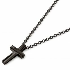 Lucleon Gunmetal Stainless Steel With Curvy Cross Cable Chain Necklace