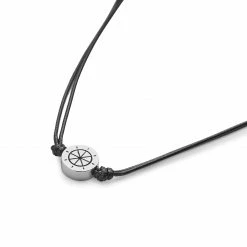 Lucleon Gravel | Silver-Tone Stainless Steel Ship’s Wheel & Black Cord Necklace