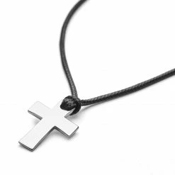 Lucleon Gravel | Silver-Tone Stainless Steel Cross & Black Cord Necklace