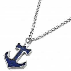 Lucleon Silver-Tone Stainless Steel Anchor With Lapis Lazuli Inlay Wheat Chain Necklace