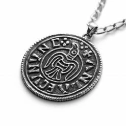 Lucleon Silver-Tone Stainless Steel Viking Coin Cable Chain Necklace