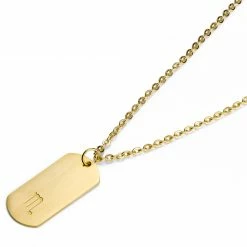 Lucleon Zodiac | Gold-Tone Aries Star Sign Dog Tag Cable Chain Necklace