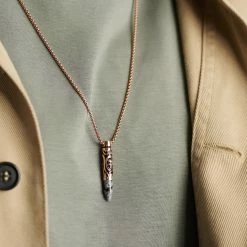 Arkai Rico | Rose Gold-Tone Stainless Steel Skull & Snowflake Obsidian Bullet Box Chain Necklace