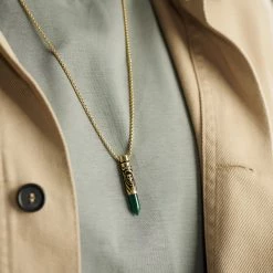 Arkai Rico | Gold-Tone Skull & Green Onyx Bullet Box Chain Necklace