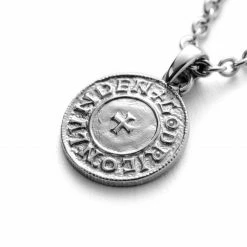 Lucleon Silver-Tone Stainless Steel Viking Coin Cable Chain Necklace