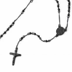 Fort Tempus Black Rosary With Our Lady Of Guadalupe & Cross Beads Necklace